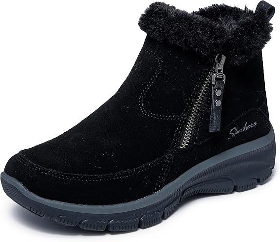 - Skechers Women’s Easy Going Cool Zip Boots deliver cozy warmth, easy zip-on comfort, and lightweight all-day support.